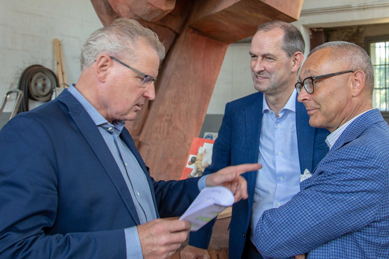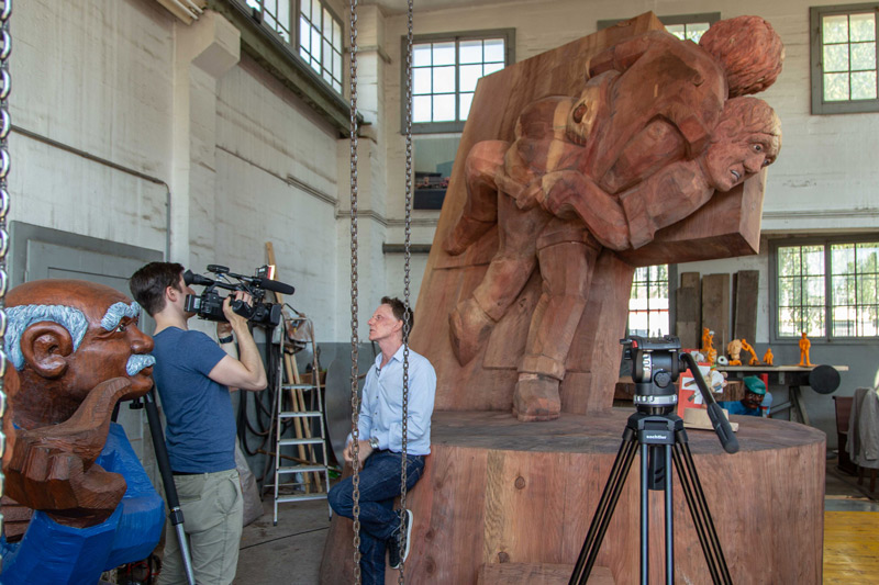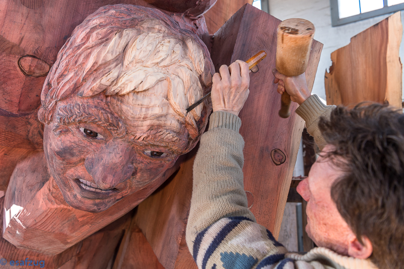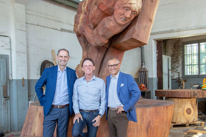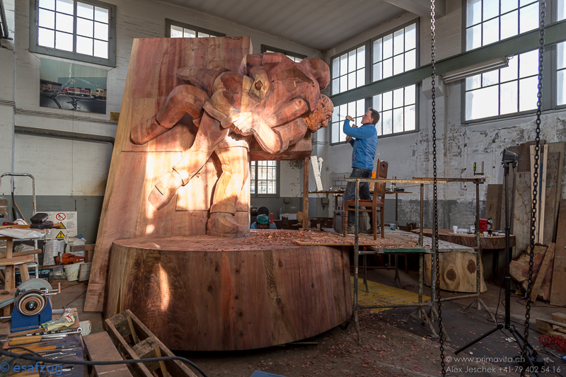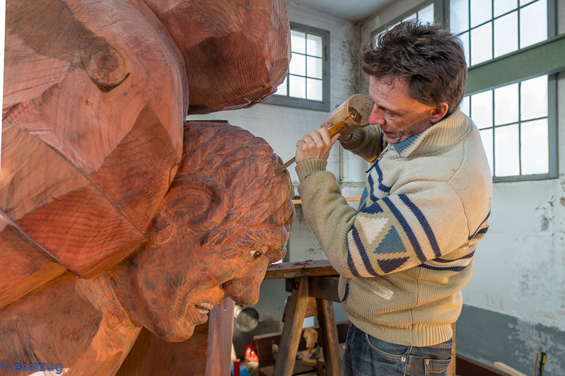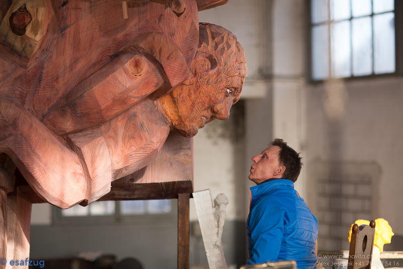 Als Skulpteur Stephan Schmidlin vor rund vier Jahren von den Plänen einiger Zuger Schwingerfreunde hörte, das Eidgenössische 2019 in Zug zu organisieren, war für ihn klar, dass man dafür etwas Bleibendes schaffen müsste. Etwas, das die Zuger immer an diesen einmaligen Anlass erinnern sollte. Was lag da für den Holzbildhauer näher als eine Skulptur. Aber wie soll sie aussehen? Für Schmidlin stand schnell fest, «das müssen zwei Böse vor dem Schweizer Kreuz sein». Damit werden nämlich nicht nur die bodenständigen und traditionellen Werte sondern auch die Verbundenheit des Schwingsportes mit unserem Land symbolisiert. Dank der im Kanton Zug ansässigen Beisheim Holding, die sich bereit erklärt hat, die Skulptur zu finanzieren, stand dem Vorhaben nichts mehr im Wege.